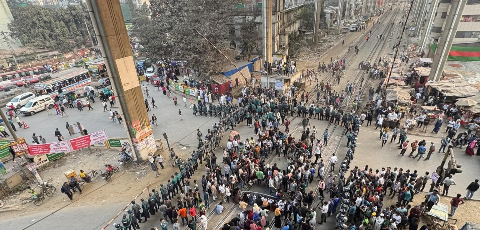 Hundreds of students from Government Titumir College have blocked roads and the Mohakhali level crossing, disrupting train services and causing severe inconvenience to commuters.