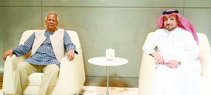 Chief Adviser Professor Muhammad Yunus calls on the Chief Protocol Officer of Qatar Ibrahim Yousif Abdullah Fakhro at Hamad International Airport on Friday on the eve of his off to Vatican to join the funeral of Pope Francis.