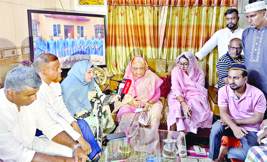 BNP Standing Committee Member Selima Rahman meets the bereaved family members of martyred Fatema Akhtar, killed in the recent plane crash at Milestone School and College in Uttara, Dhaka on Saturday.