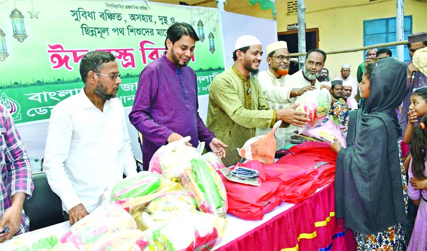 Bangladesh Jamaat-e-Islami Dhaka metropolitan south distributes Eid clothes among the underprivileged, helpless and destitute people in the city’s Demra area on Friday.