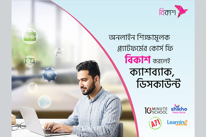 Customers are getting various amounts of cashbacks, discounts on bKash payments for different courses from popular online educational platforms – ’10 Minute School’, ‘Shikho’, ‘Area71 Academy’, and ‘Learning Bangladesh’, facilitating their pursuit of academic excellence, career advancement, and business proficiency.