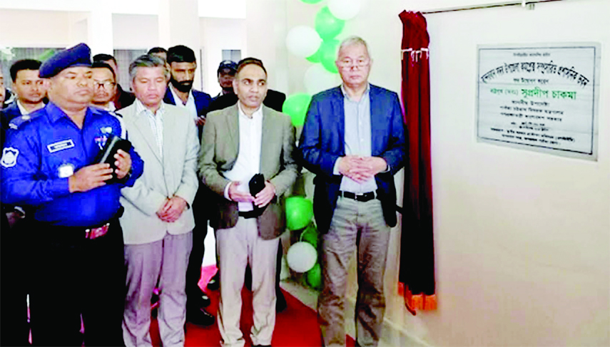 Chittagong Hill Tracts Affairs Adviser Supradip Chakma inaugurates the extended administrative building of Bandarban Sadar Upazila Complex on Saturday.
