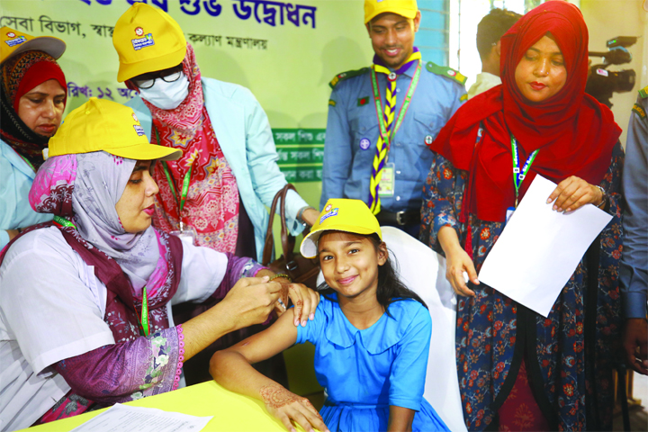 Free typhoid vaccination begins across the country for the first time under a government initiative. The Photo was taken from Sir Salimullah Muslim Orphanage, Azimpur on Sunday.