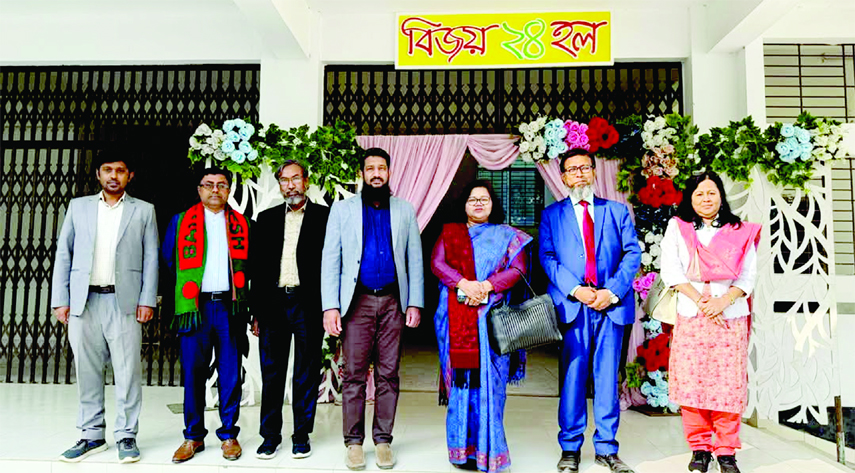 GAZIPUR: A delegation of University Grant Commission led by its member Prof Dr Masuma Habib takes part in a photo session with the Vice-Chancellor of Dhaka University of Engineering and Technology Prof Dr Mohammad Zoynal Abedin on the DUET campus recently.