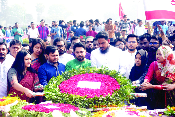 Jatiya Nagorik Party pays homage to the martyrs by placing a floral wreath at the National Memorial in Savar on Wednesday marking Independence Day.