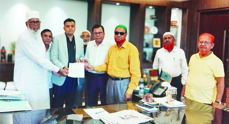 NARAYANGANJ: A delegation of Aamra Narayanganj Basi submits a memorandum to the Administrator of Narayanganj City Corporation Dr Abu Nasor Muhammad Abdullah at his office on Monday.