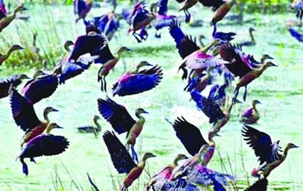 UNB, Dhaka:Tanguar Haor, a unique destination for migratory birds, especially ducks, is seeing the flocks of an increased number of winged visitors this winter because of improvement in its overall environmental quality.A new survey conducted by IUCN Bangladesh has recorded 52 species of migratory birds of 32,225 individuals this year against 17,204 in 2013 and 28,876 in 2012.The IUCN team carried out the waterfowl census in Chattannar Beel, Lechuamara, Hatirghata, Berberia, Rowa, Rupaboi, Bagmara Gop and Chattannar Khal, Ballardubi, Tekunna and adjacent Joipur-Golabari of Tanguar Haor from January 25 to 26 last.The team members included Prof Dr MM Feeroz, a teacher of Zoology Department at Jahangirnagar University; Sayam U Chowdhury, vice-president of Bangladesh Bird Club; ABM Sarowar Alam Dipu, assistant project officer of IUCN Bangladesh; Mohammad Foisal, secretary of Bangladesh Bird Club; and Istiak Sobhan, programme coordinator of IUCN Bangladesh.The survey team recorded 52 species of migratory birds from different beels, including some adjacent grounds of this haor. The highest bird population (11,684) was observed in Lechuamara Beel while the lowest population of bird (11) in Tekunna Beel of Tanguar Haor. Among the globally threatened birds, Baikal Teal, Falcated Duck, Red-crested Pochard, Black-tailed Godwit, Peregrine Falcon, Glossy Ibis, Little Egret, Yellow-billed Egret, Grey Heron, Purple Heron, Cattle Egret, Cotton Pygmy-goose, Falcated Duck, Ruddy breasted crake, Waterrail, White Wagtail, Citrine Wagtail, Little Ringed Plover, White-throated kingfisher, Common Kingfisher and Greyheaded Lapwing were found during the survey.Also were seen in plenty, Eurasian Coot (6,396 birds), Northern Pintail (4305), Little Cormorant, Eurasian Teal, Eurasian Wigeon, Mallard, Gadwall, Red-crested Pochard, Common Pochard, Tufted Duck, Ferruginous Duck, Purple Swamphen, Ferruginous Duck, Indian Spot-billed Duck and Ruff.The presence of one very rare bird, Baikal Teal, was recorded at the Lechuamara Beel while that of 10 very rare glossy Ibis registered at the Tanguar Hoar.As the part of Asian Waterfowl Census Programme, Bangladesh Bird Club conducts the survey in Bangladesh, which is carried out in January each year. The IUCN Bangladesh in association with Bangladesh Bird Club conducts the waterfowl census in Tanguar Haor. Improved habitats attract winged visitors.More migratory birds will visit the water bodies in Bangladesh if the water bodies could be managed properly to ensure safe habitats for them and keep the birds free from local disturbance, according to experts.”Safe habitats encourage the migratory birds to visit wetlands. If the migratory birds feel safe and secure in a particular water body, they visit it and stay for a longer period, bird expert Prof Feeroz told UNB.The winged visitors try to avoid local disturbance, he said, if the authorities concerned could ensure safe habitats and available food for the birds through proper management of water bodies and check poaching, more migratory birds will visit Bangladesh in coming years.Prof Feeroz said as the IUCN Bangladesh improved the environmental quality of Tanguar Haor through proper management, more migratory birds are visiting it this time. “Tanguar Haor is an example that shows wetland could be protected through proper management,” he added.ABM Sarowar Alam Dipu, a bird specialist of the IUCN Bangladesh, said local disturbance has been minimised significantly and reed land protected in the Tanguar Haor in the last three years so that the ecosystem and biodiversity of the wetland could be improved.”As we caught relatively less amount of fish last year from Tanguan Haor, the aquatic vegetable has increased in the haor this year welcoming more migratory birds to visit it,” he said.Sarowar Alam said, the government earlier leased out the wetland, affecting its environmental quality. Later, a community-based sustainable management has been introduced to improve environmental condition of the haor.Visiting trends of birds.Tanguar Haor is a home to thousands of local and migratory water birds. A large number of these birds use the aquatic vegetation for shelter, food and nesting.To escape freezing cold during winter, birds from the Himalayas and faraway places like Siberia usually migrate to relatively warmer swampy wetlands, low-lying areas and coastal belt of Bangladesh, but the pattern of winged visitors is now changing fast due to climatic changes and local disturbances.The waterfowl censuses in Tanguar Haor (1992-2012) shows that nearly 2.75 lakh migratory birds visited the haor in 2004 while 2.4 lakh in 2002, 2.1 lakh in 2003 and 1.9 lakh in 2005. The influx of birds has marked a drastic fall since 2005 while it was only 25,000 in 2007.