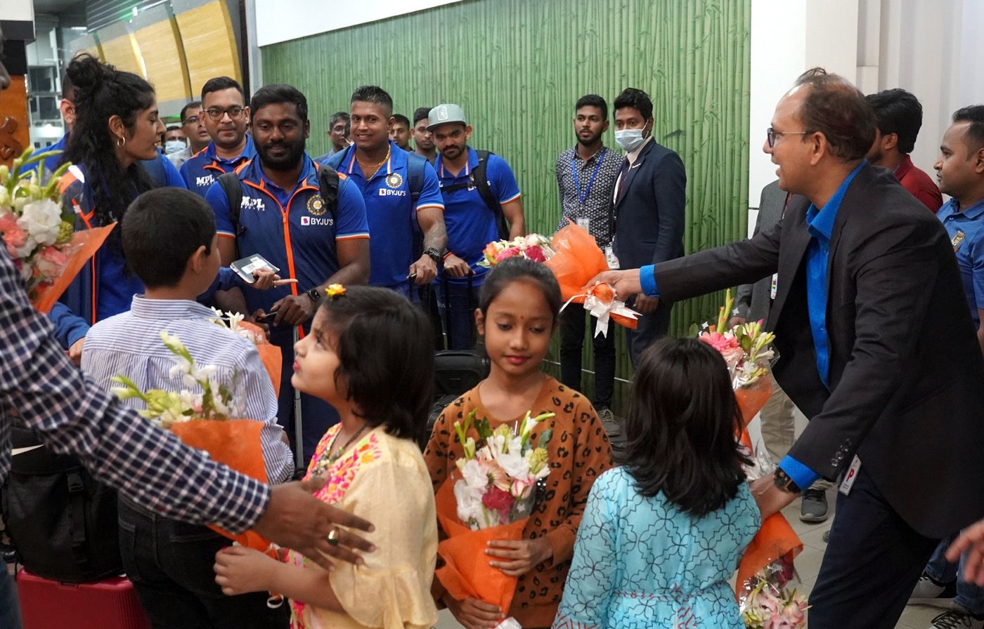 The India national cricket team arrived in Dhaka on Thursday evening. The tourists will play a three-match ODI and two-match Test series against the hosts Bangladesh.