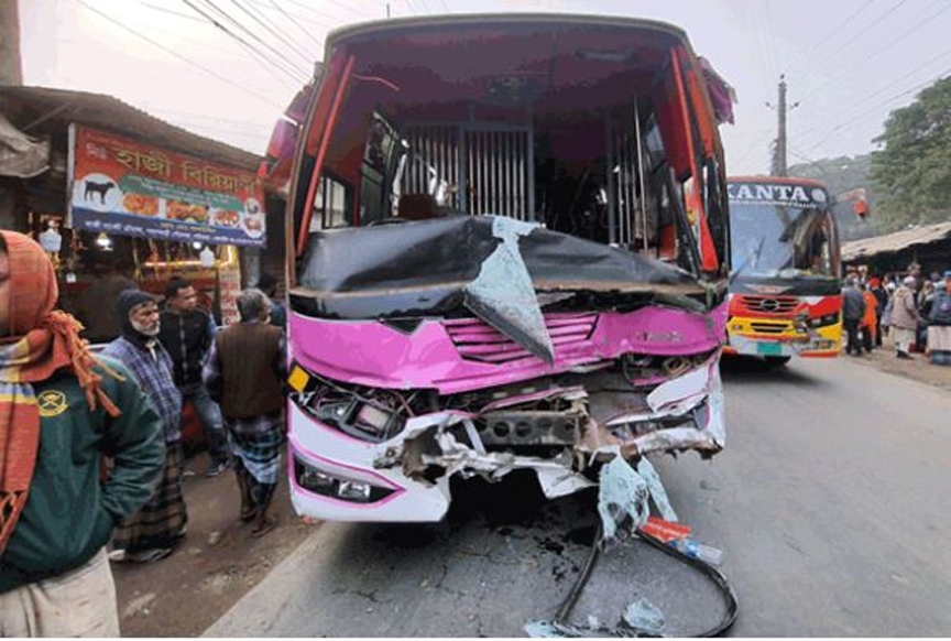 Masud Rana, officer-in-charge (OC) of Palashbari police station, said the Nilphamari-bound bus of ‘Al Baraka Paribahan’ crashed into the motorcycle coming from the opposite direction around 8am, leaving Bidyut dead on spot.