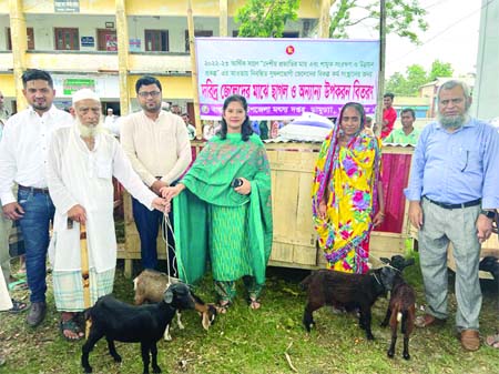 DAMUDYA (Shariatpur): Hasiba Khanom, UNO, Damudya Upazila distributed goats among the poor fishermen at Damudya Upazila under Developmnet Project on Tuesday.