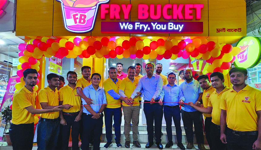Animesh Saha, Executive Director of Fry Bucket (a fast food chain brand), inaugurates its outlet at the capital's Banasree recently. Rashedul Islam, Deputy General Manager, Anisul Islam, Head of Marketing of the brand, and local elite, were present.