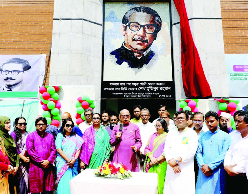 BOU, GAZIPUR: Vice-Chancellor Prof Dr. Syed Humayun Akhter of Bangladesh Open University speaks at the unveiling ceremony of a mural of Father of the Nation Bangabandhu Sheikh Mujibur Rahman installed at Dhaka Regional Centre of the university on Wednesday.