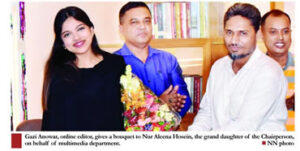 Meanwhile, Mr. Arshad Hosein Director of The New Nation, Dhaka Union of Journalists (DUJ) General Secretary Md. Khurhid Alam, Weekly Robbar’s former Editor Syed Tosharaf Ali, Jatiyo Gonotantrik Party (Jagpa) Senior Vice-Chairman Md. Asaduzzaman, Bangladesh Labor Party’s spokesperson Shariful Islam, among others, greeted the daily’s publisher, editor and journalists with flowers on the occasion. Later, the Chairperson cut the cake in celebration of the founding anniversary with the guests.