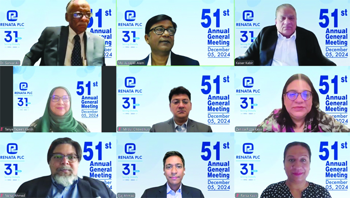 Renata’s CEO and Managing Director Kaiser Kabir, as well as Directors Zahida FizzaKabir, Sajeda Farisa Kabir, Mridul Chowdhury, Tanya Tazeen Karim, Nehal Ahmed, and Ejaj Ahmad, company secretary Md. Jubayer Alam, statutory auditors, scrutinizer, senior executives and shareholders were present at the programme.