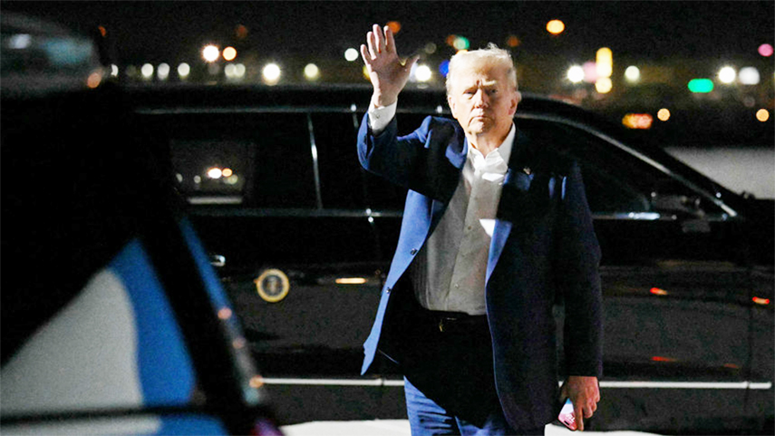 US President Donald Trump waves after stepping off Air Force One upon arrival at Harry Reid International Airport in Las Vegas, Nevada, on January 24, 2025.