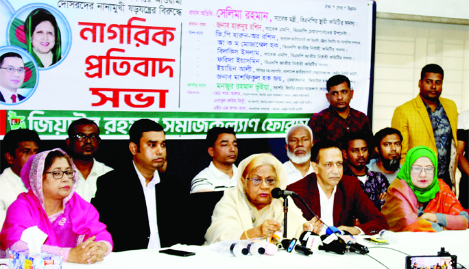 BNP Standing Committee Member Selima Rahman speaks at a civic protest meeting organised by Ziaur Rahman Social Welfare Forum at National Press Club on Saturday.
