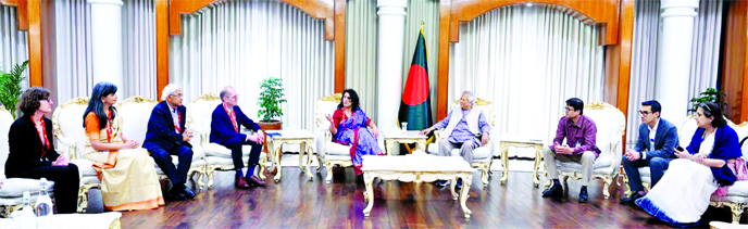 The leaders of Nirapon, which works for the improvement of worker safety in Bangladesh's hundreds of factories, call on Chief Adviser Professor Muhammad Yunus at the State Guest House Jamuna on Tuesday.