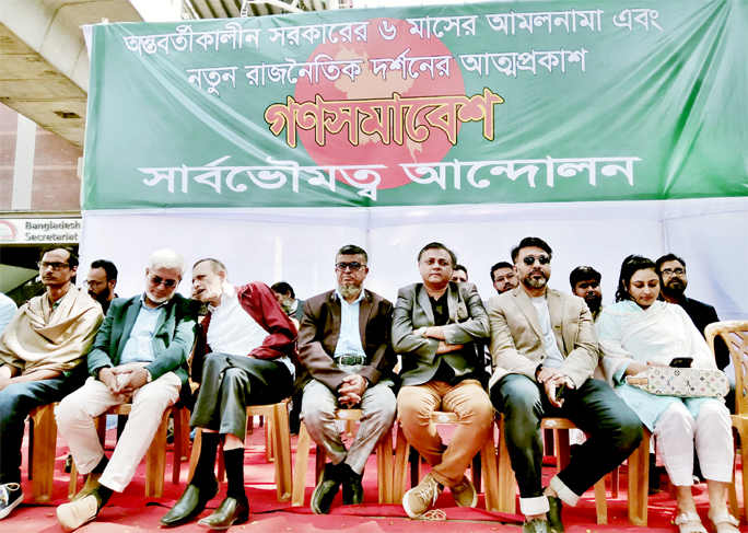Sarbovoumotto Andolon (Sovereignty Movement) stages a mass rally in front of National Press Club on Saturday.
