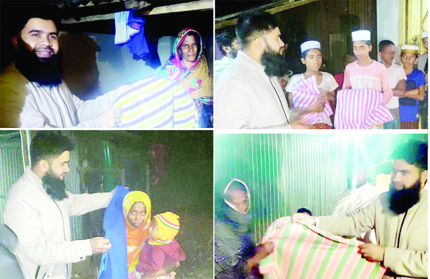 PHULBARIA, MYMENSINGH: Upazila Nirbahi Officer Md Ariful Islam distributes winter clothes among the cold-hit people in the Phulbaria upazila in Mymensingh on Wednesday.