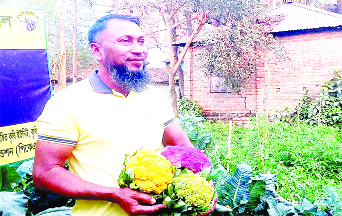 Upon visiting the ground, it was found that Shafiqul Islam, son of Abdus Sattar of Mathalpara village of Salimpur union, created a surprise by cultivating new varieties of colorful cauliflower.
