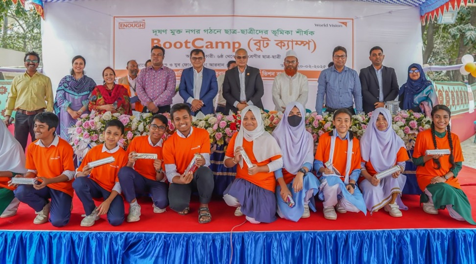 The World Vision Bangladesh On Thursday morning organised a boot camp titled “The Role of Students in Creating a Pollution-Free City,” aiming to raise awareness among students about hygiene, reducing plastic use, and combating air, noise, and environmental pollution.