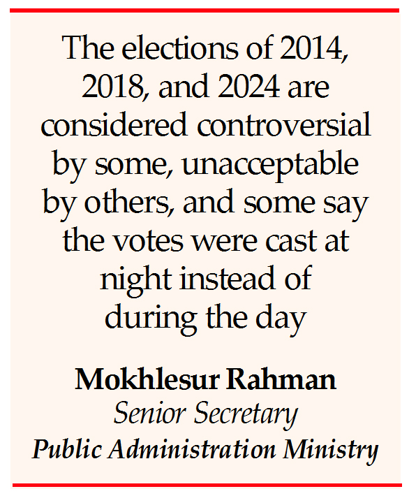 In response to a question, he stated, “The elections of 2014, 2018, and 2024 are considered controversial by some, unacceptable by others, and some say the votes were cast at night instead of during the day.