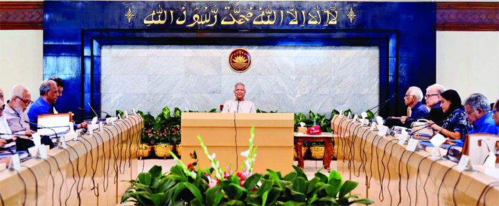 Chief Adviser Professor Muhammad Yunus speaks at the adviser’s meeting at his Tejgaon office in the capital on Tuesday. March 5, 2025 Chief Adviser Professor Muhammad Yunus speaks at the adviser's meeting at his Tejgaon office in the capital on Tuesday.