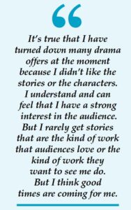 I understand and can feel that I have a strong interest in the audience. But I rarely get stories that are the kind of work that audiences love or the kind of work they want to see me do. But I think good times are coming for me.