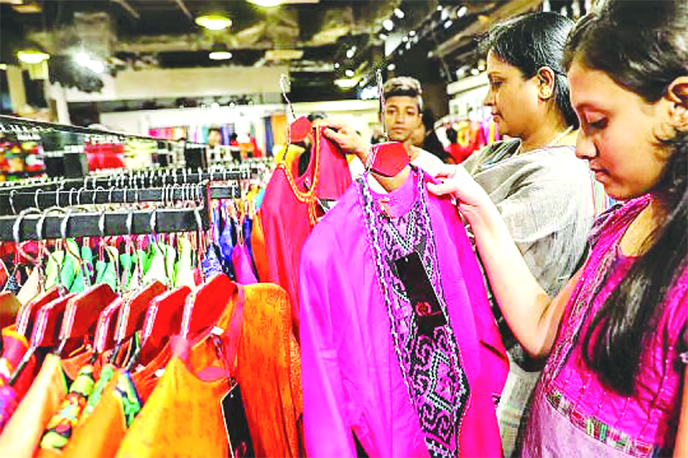 Salespersons of different brand shops, including Aarong, Ecstasy, Yellow, Cat’s Eye, Sailor, Grameen UNIQLO, Deshi Dosh, Richman, Infinity, Gentle Park, Easy and Dorji Bari were seen busy attending to the shoppers.