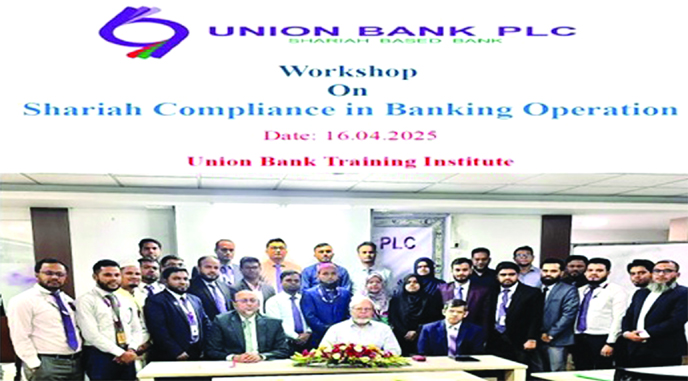 Md Fariduddin Ahmed, Chairman of the Board of the Directors of Union Bank poses for a photo session with the participants of ‘Shariah Based Banking’ workshop held at the bank’s Training Institute in the capital recently.