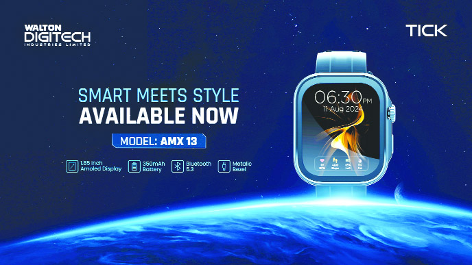 Priced at BDT 4,850, currently the ‘TICK AMX13’ smartwatch is available at all Walton Plaza across the country. Customers can also order directly online by visiting Walton’s official website (https://waltondigitech.com/products/lifestyle/smart-watch/walton-tick-amx13-smart-watch?tab=specs). Packed with features and premium in design, the ‘TICK AMX13’ smartwatch comes with a 1-year warranty and reliable after-sales service.