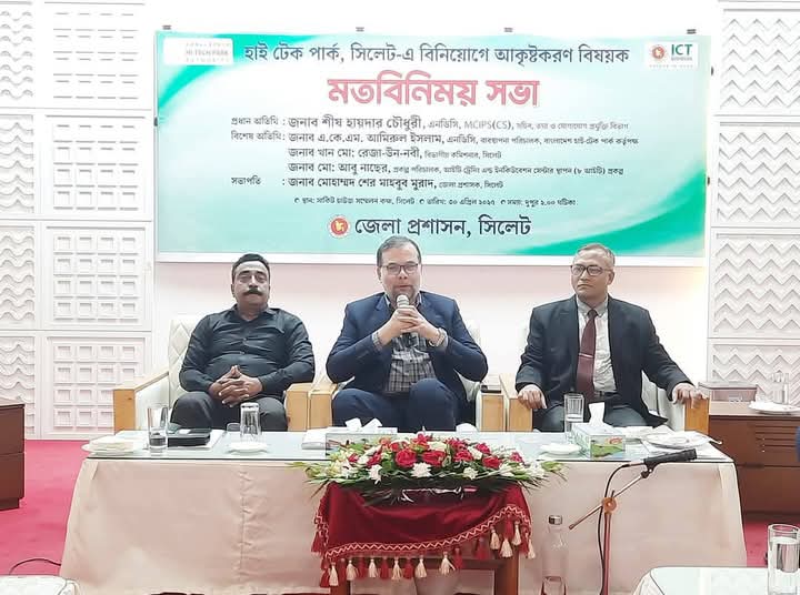 A discussion meeting on attracting investment in Hi-Tech Park, Sylhet was held today, Wednesday (April 30) at 2 pm at the conference room of Sylhet Circuit House.