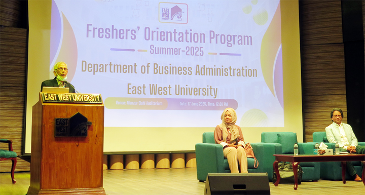 East West University (EWU) welcomed around 2,200 newly admitted students through its comprehensive Orientation Program for the Summer Semester 2025. The program was held on 17 June 2025 at the EWU Campus in Aftabnagar, Dhaka. Each academic department organized separate orientation sessions tailored to their respective fields.