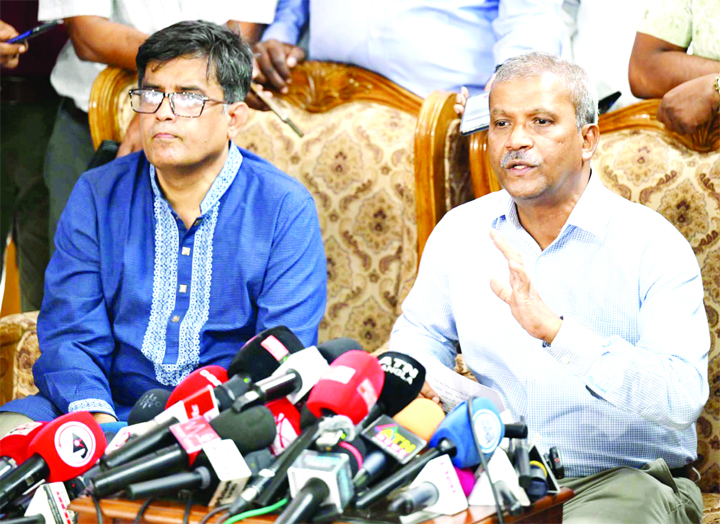 Law, Justice and Parliamentary Affairs Adviser Dr Asif Nazrul speaks at a press briefing at