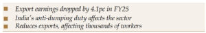 He also blamed the anti-dumping duty imposed by the Indian government for the poor export performance.