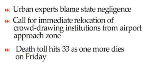 The crash, which killed at least 33 people and injured over 150, has been described by BIP as a predictable outcome of systemic negligence. Experts noted that the death toll might have been even higher were it not for the proximity of metro rail and elevated expressways, which enabled a faster emergency response.