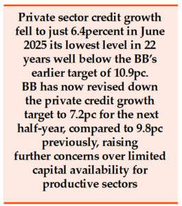 Private sector credit growth fell to just 6.4percent in June 2025 its lowest level in 22 years well below the central bank’s earlier target of 10.9percent. The DCCI attributes this sluggish lending to the high cost of borrowing and declining investor sentiment.