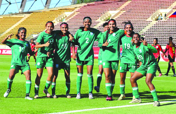 Bangladesh Under-20 Women’s Football team crushed Timor-Leste Under-20 Women’s Football team by eight goals to nil in their second Group-H match of the Asian Football Confederation (AFC) Under-20 Women’s Asian Cup Qualifiers at New Laos National Stadium in Laos on Friday. Trishna Rani of Bangladesh Under-20 Women’s Football team hit a hat-trick.