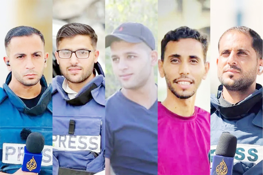 The channel said that five of its staff members were killed during the strike on a tent in Gaza City, listing the others as Mohammed Qreiqeh along with camera operators Ibrahim Zaher, Mohammed Noufal and Moamen Aliwa.