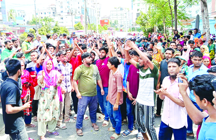 Vehicular movements come to a halt on Wednesday on the Uttara bound road from Badda as workers of Eurozon garment factory block the Kuril intersection demanding payment of due salaries and allowances.