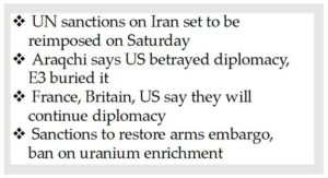 The decision to restore sanctions by Western powers is likely to exacerbate tensions with Tehran, which has already warned that the action would be met with a harsh response and open the door to escalation.