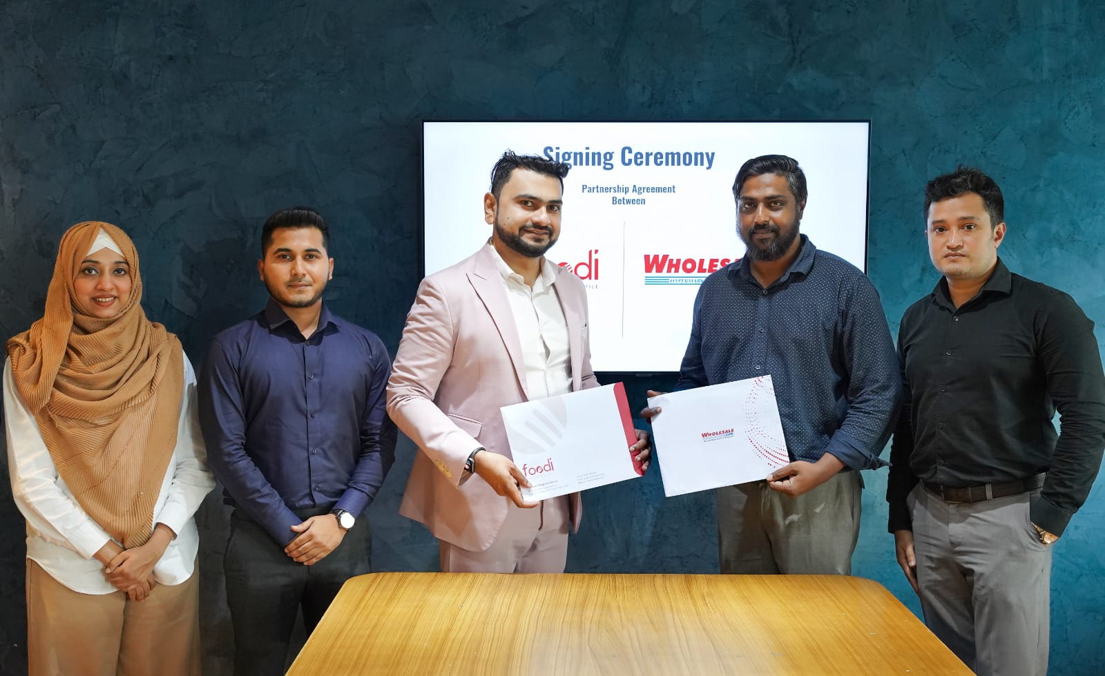 The signing ceremony was attended by Shahnewas Mannan, Chief Operating Officer of Foodi, and Hridita Shawon, Manager of Foodi Shop. From Wholesale Club, Senior Executive of E-commerce Mazedur Rahman Shuvo and Manager of Digital Marketing & E-commerce Mehedi Hasan were present at the event.