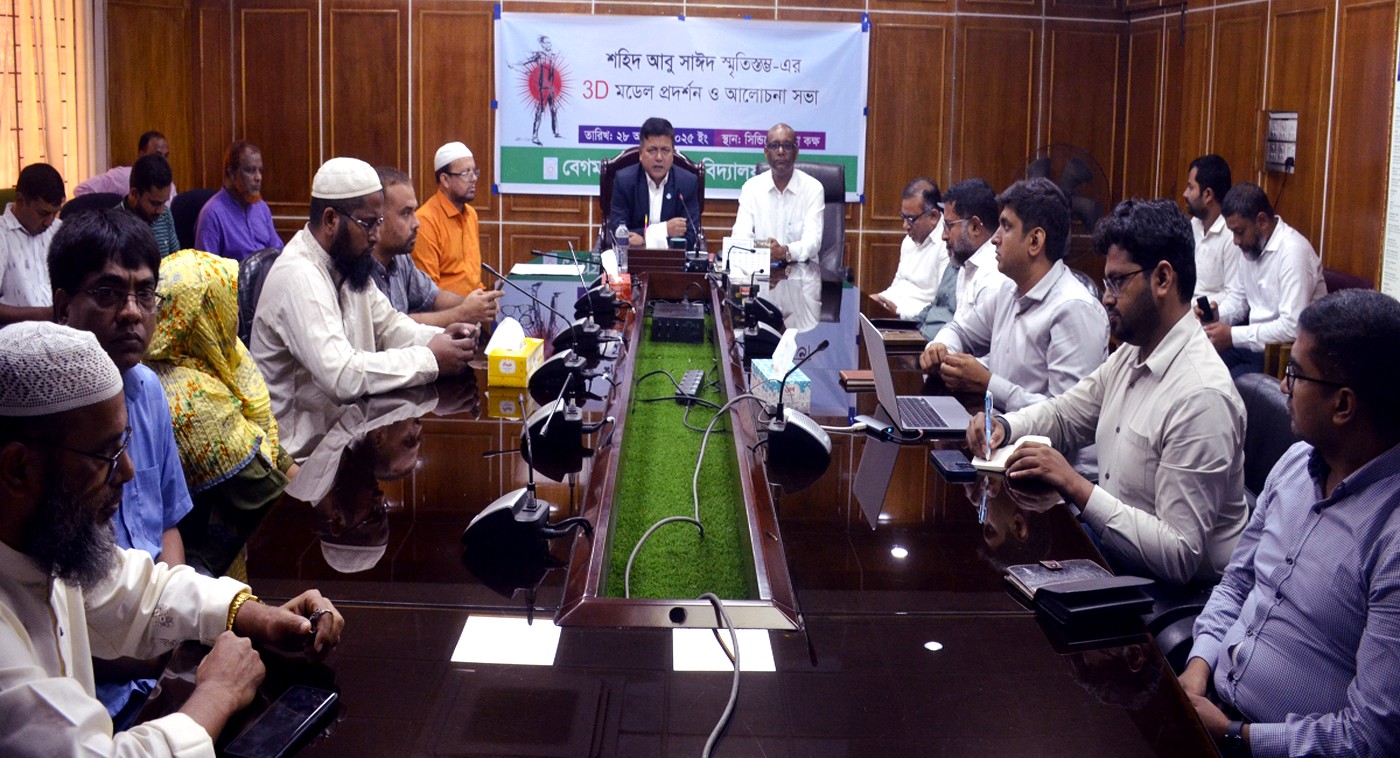 He said this while presiding over a meeting organised at the university’s syndicate meeting room to display the 3D model of the Martyr Abu Sayeed Memorial, to be built at Shaheed Abu Sayeed Square, with the support of the Ministry of Liberation War Affairs.