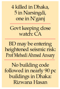 A fire erupted in a Baridhara residence soon after the quake. While its cause remains unclear, two fire service units doused the blaze quickly. Another fire was reported in Munshiganj’s Gazaria upazila.