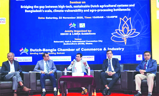 The Dutch-Bangla Chamber of Commerce & Industry (DBCCI), in collaboration with LIMRA Exhibitions, has successfully organized a high-level seminar titled “Bridging the gap between high-tech, sustainable Dutch agricultural systems and Bangladesh’s scale, climate-vulnerability and agro-processing bottlenecks”.
