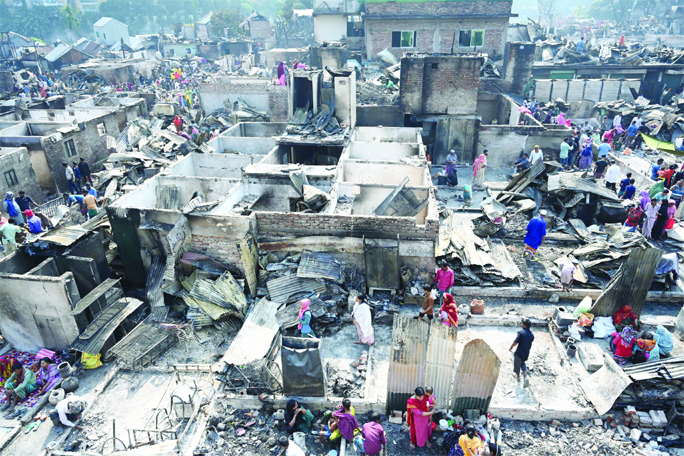 A large portion of the Korail slum burnes down on Tuesday’s blaze. The inhabitants of the slum