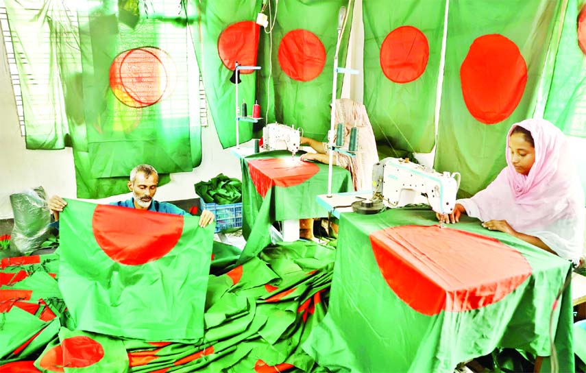 Ahead of victory month craftsmen at factories in Matuail are passing busy days making national flags, as demand surges ahead of Victory Day on 16 December, when the red-and-green flag decorates rooftops, vehicles and people's hands.