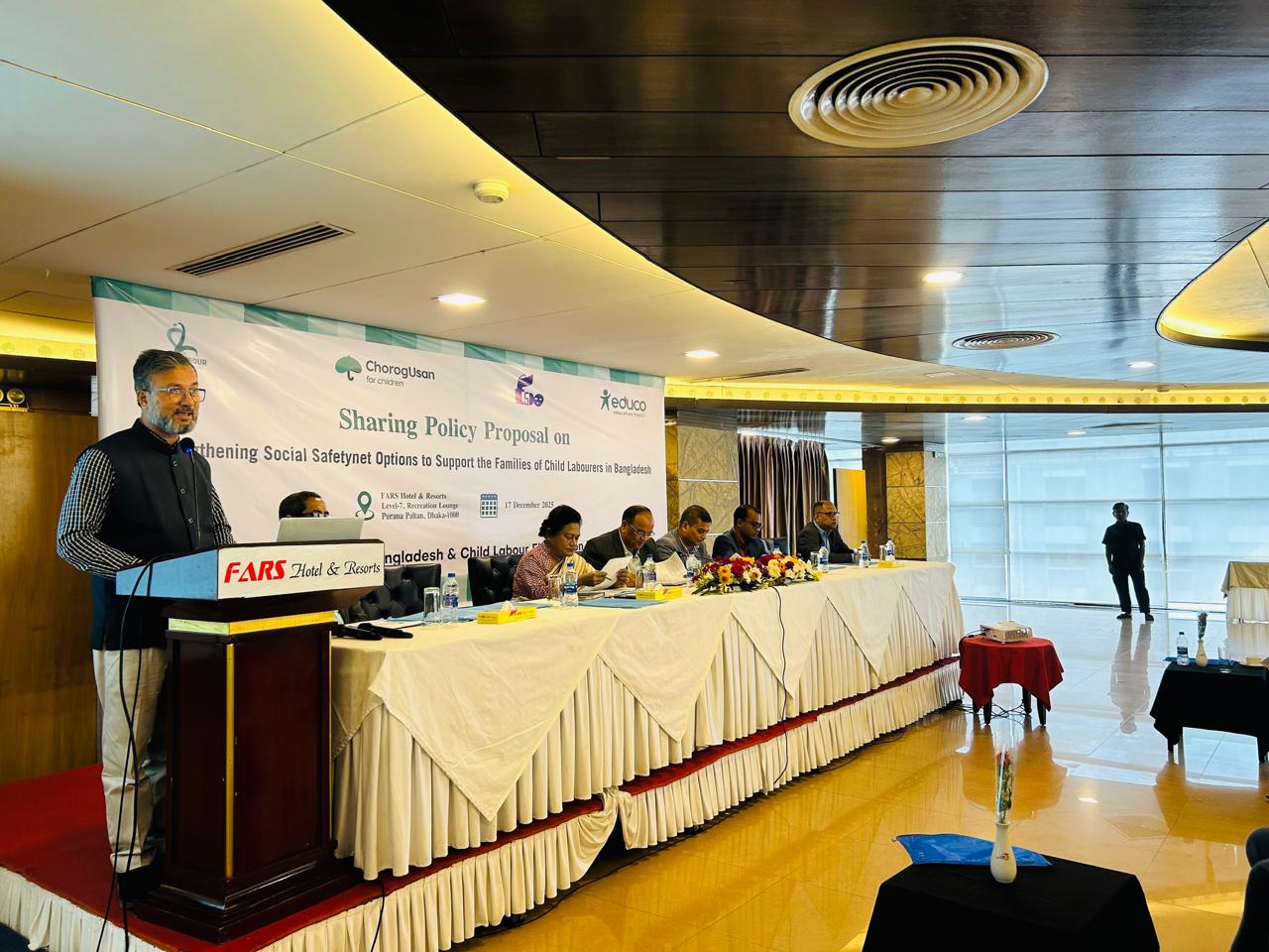 Afzal Kabir Khan said a strong social protection system was essential to eliminate child labour. He noted that social security programmes reduce household poverty risks and help families cope with economic or health shocks, thereby lowering reliance on child labour.