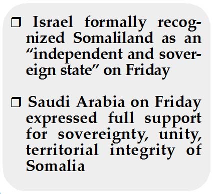 Arab, Islamic states reject Israel’s recognition of Somaliland