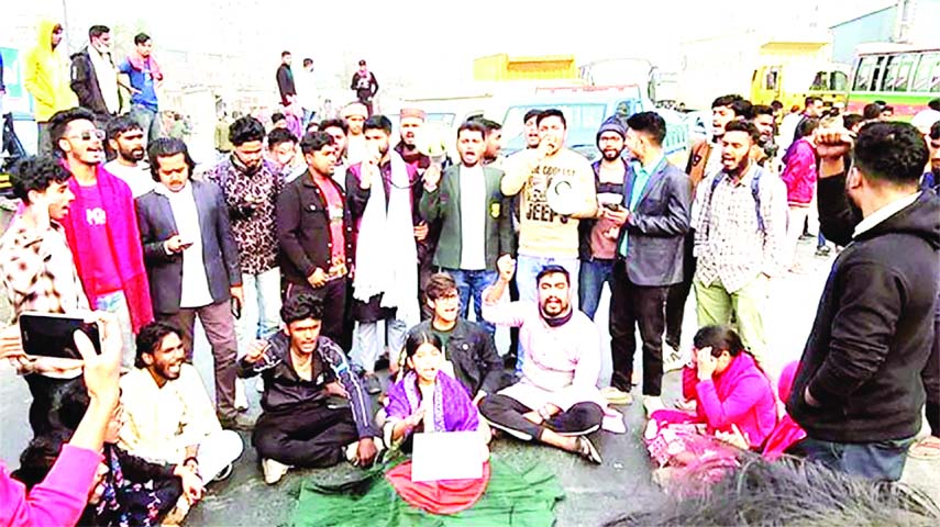 Students and local residents blocked the Dhaka-Chattogram Highway in Narayanganj demanding a fair trial for the murder of Inquilab Moncho spokesperson Osman Hadi.